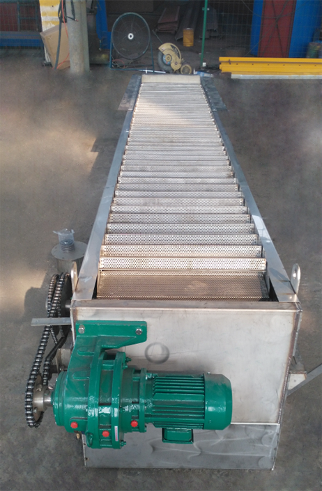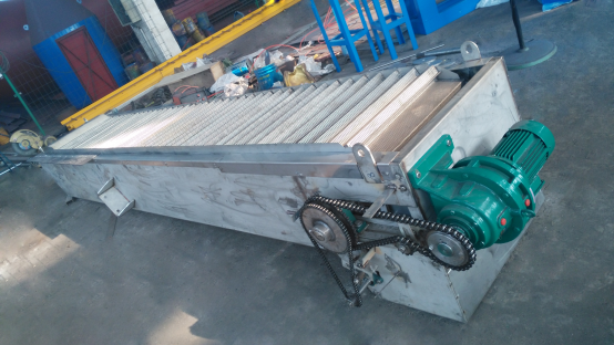 網(wǎng)板式階梯格柵機(jī)能清除漂浮物、纖維物質(zhì),運(yùn)行時(shí)不堵塞雍水,能將柵渣清除干凈。主要由驅(qū)動裝置、機(jī)架、傳動鏈輪、牽引鏈條、網(wǎng)板及電氣控制柜等主要部件組成。工作時(shí)網(wǎng)板在二側(cè)傳動鏈條的帶動下,自下而上將整個(gè)渠道寬度范圍內(nèi)的污物向上提取,抵達(dá)上部時(shí),通過鏈輪的轉(zhuǎn)向功能,自動完成卸污工作。