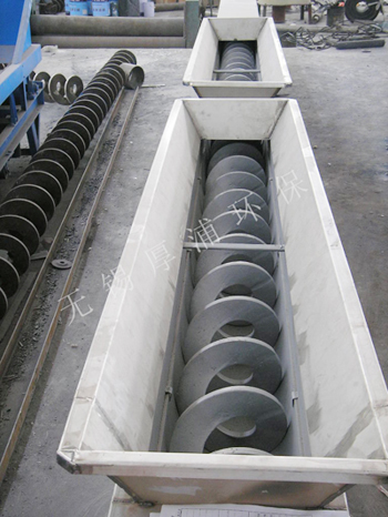 無(wú)軸螺旋輸送機(jī)是用于傳輸工業(yè)生產(chǎn)過(guò)程中產(chǎn)生的各種廢物及濾渣,結(jié)構(gòu)形式為無(wú)軸螺旋,物料由進(jìn)口輸入,經(jīng)螺旋輸送至尾端排放,整個(gè)傳輸過(guò)程除進(jìn)出口料斗外均在密閉槽體中進(jìn)行。傳動(dòng)采用軸裝式減速機(jī),并在減速機(jī)端設(shè)置軸承及防塵油封。設(shè)備運(yùn)行過(guò)程中沒有高速運(yùn)轉(zhuǎn)部件,螺旋下襯耐磨尼龍,磨損低,維護(hù)量小。